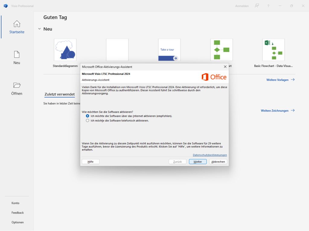 *Nicht kompatibel mit anderen Office 2024 Produkten und Versionen anderer Jahrgänge. Für die Installation zusammen mit Microsoft 365 schaue hier: Installation von Visio/Project bei vorhandenem Microsoft 365