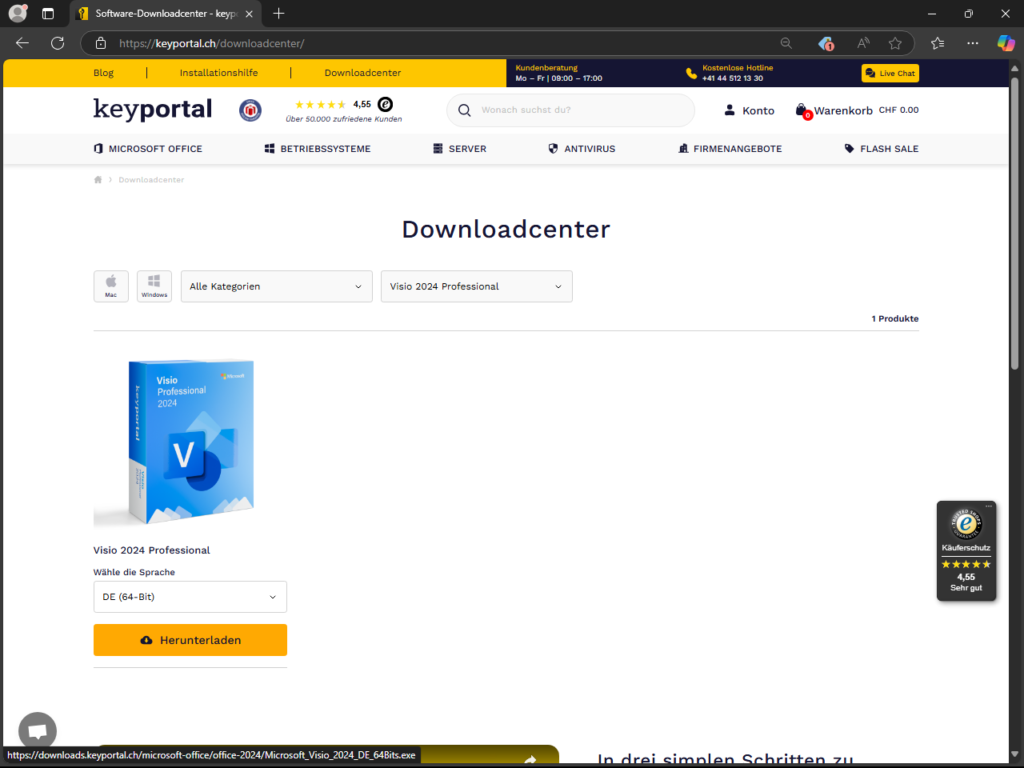 Download und Installation direkt nach dem Kauf