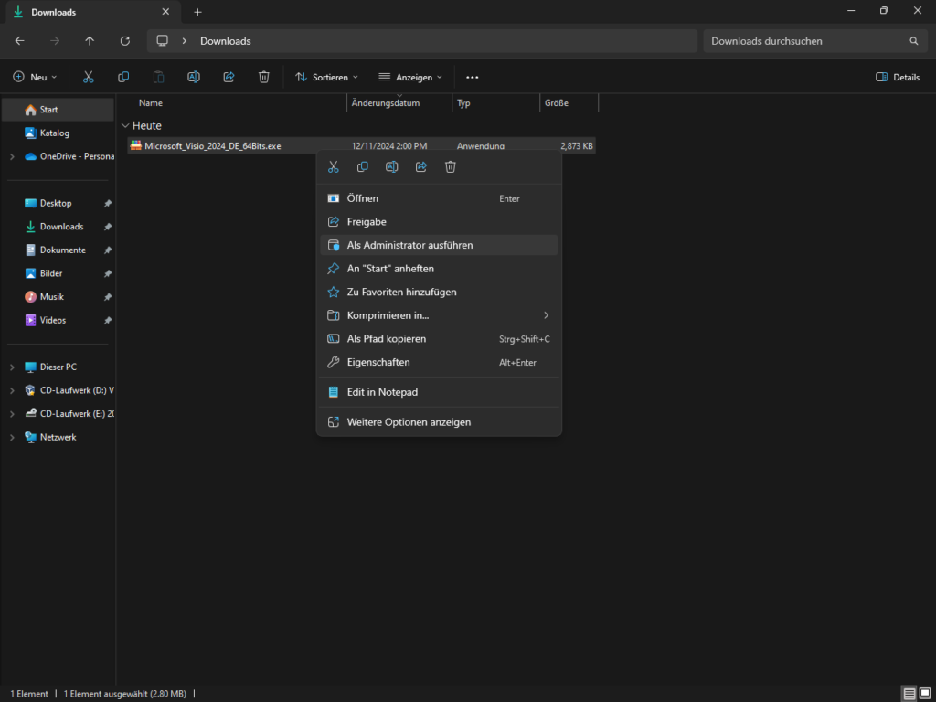 3. Führe die heruntergeladene Datei als Administrator aus, indem du mit der rechten Maustaste auf die .exe-Datei von uns klickst und mit der linken Maustaste auf «Als Administrator ausführen» klickst. Hinweis: Sollte dort die Option nicht aufgeführt sein, musst du die Datei erst mit einem einzelnen Linksklick auswählen und anschließend einen Rechtsklick darauf machen.