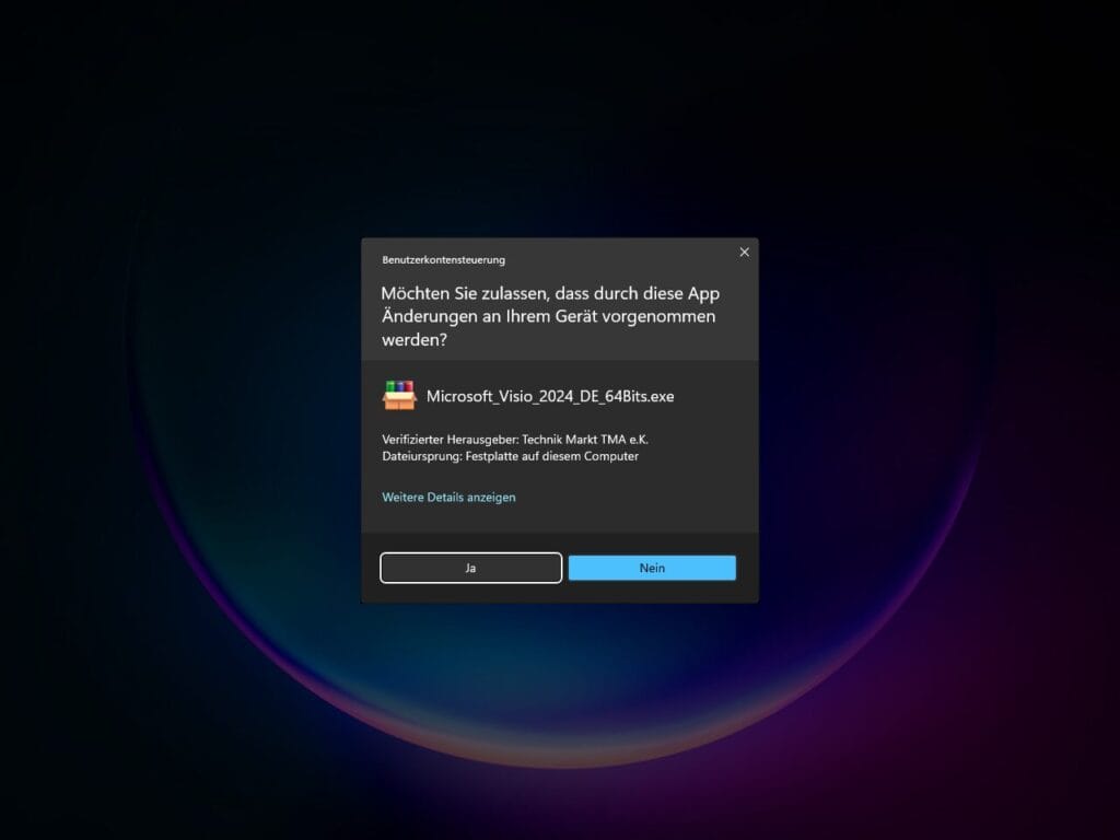 4. Wenn die Benutzerkontensteuerung erscheint, klicke wie im folgenden Bild auf «Ja».