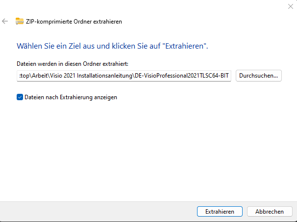 2. «Wähle im nachfolgenden Fenster «Extrahieren» aus: