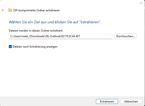 4. Ein Fenster sollte erscheinen, klicke auf «Extrahieren».