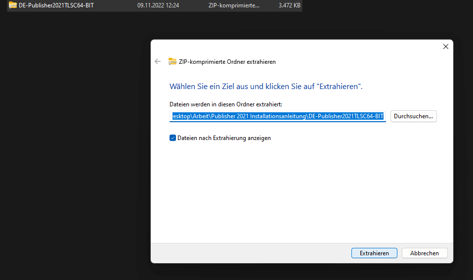4. Ein Fenster sollte erscheinen, klicke auf «Extrahieren».