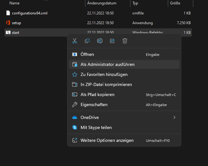 5. Nach Abschluss sollte sich der extrahierte Ordner von selbst öffnen, ansonsten befindet er sich neben dem Zip-Ordner. Gehe in den extrahierten Ordner und klicke mit der rechten Maustaste auf «Start» und dann auf «als Administrator ausführen».