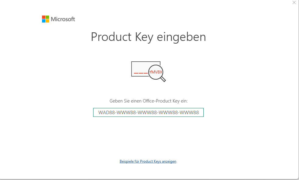 9. Tippe den erhaltenen Product Key ein (am einfachsten mit STRG+c kopieren und mit STRG+v einfügen).